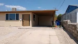 Nice-sized yardFaces southCarport and drive wayFront yard has gravelGood sized denRefrigerated air