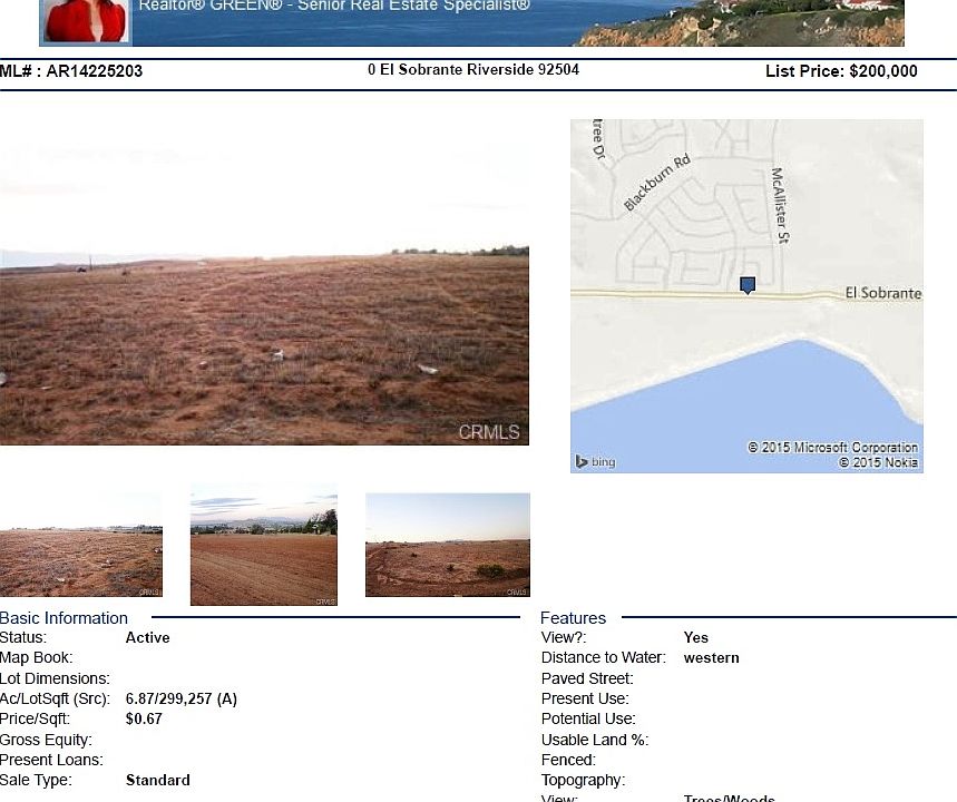 6.87 Acres beautiful vacant land, APN 285-060-038. Near Lake Mathews, wonderful opportunity in a great location, convenient access. Please call listing agent Katy Xu 626-765-7125 for more info. Thank you