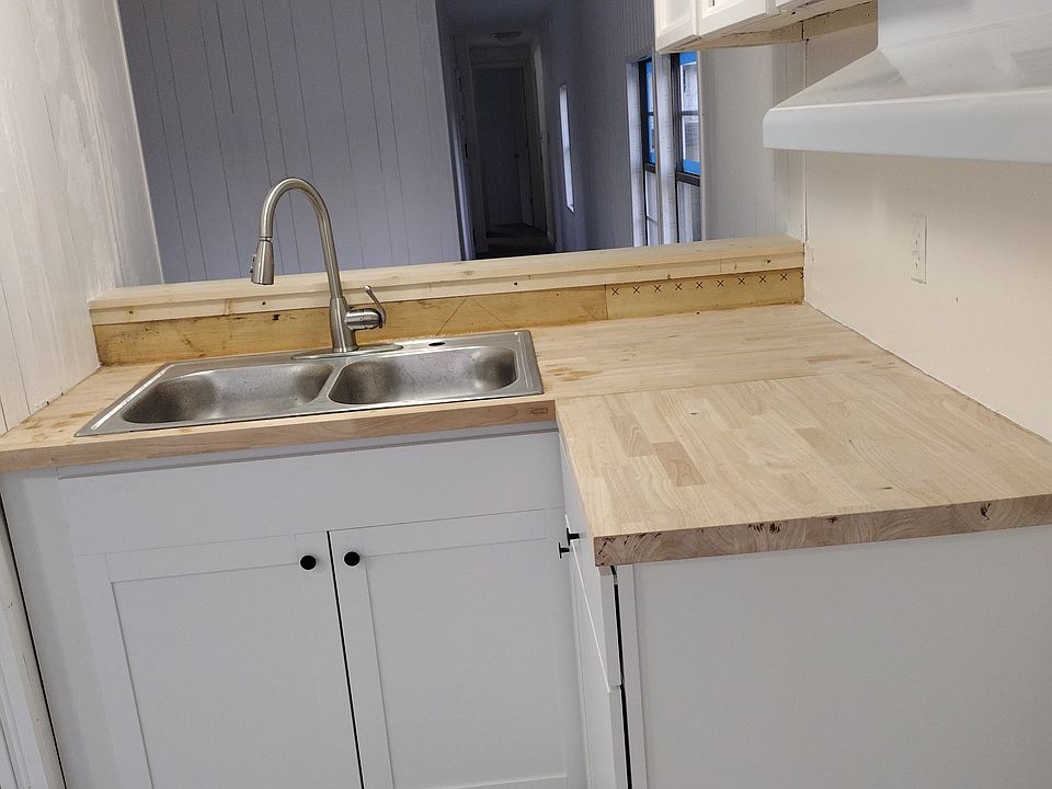 Freshly painted, new flooring, new lower cabinets, countertops, and sink, new stove, new Heating And Air mini split