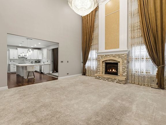 Brick front custom home with a 2-story bay, backing to a park and featuring a 3-CAR GARAGE. This LARGE 5-BEDROOM, 4.5-BATH residence offers an expansive layout with 4 BEDROOMS ON THE UPPER LEVELS and 1 BEDROOM IN THE FINISHED BASEMENT. The FINISHED BASEMENT WAS COMPLETED 2 YEARS AGO, providing additional living and entertaining space. The home features a SPACIOUS KITCHEN WITH A LARGE CENTER ISLAND, extensive cabinetry, and a family room with a BRICK FIREPLACE. The PRIMARY SUITE INCLUDES A PRIVATE SITTING AREA. Recent updates include NEW HARDWOOD FLOORS THROUGHOUT and FRESH PAINT. Located in a FULL-AMENITY COMMUNITY offering a clubhouse, pools, fitness center, tennis courts, basketball and volleyball courts. ELEMENTARY SCHOOL LOCATED WITHIN THE COMMUNITY.