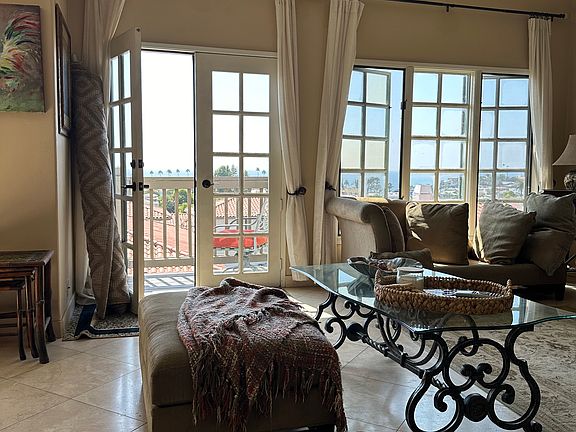 Oceanview hacienda style 2bd 2.5ba rental in the heart of Encinitas. Two stories townhome style condo with ocean views throughout. Artsy Mediterranean vibe. The living room, kitchen and dining room boast travertine floors, granite dish counters , large gas fireplace, and multiple french doors to an outdoor balcony with unobstructed views. The bedrooms located downstairs each have their own balconies, the master with its own luxurious bathroom.