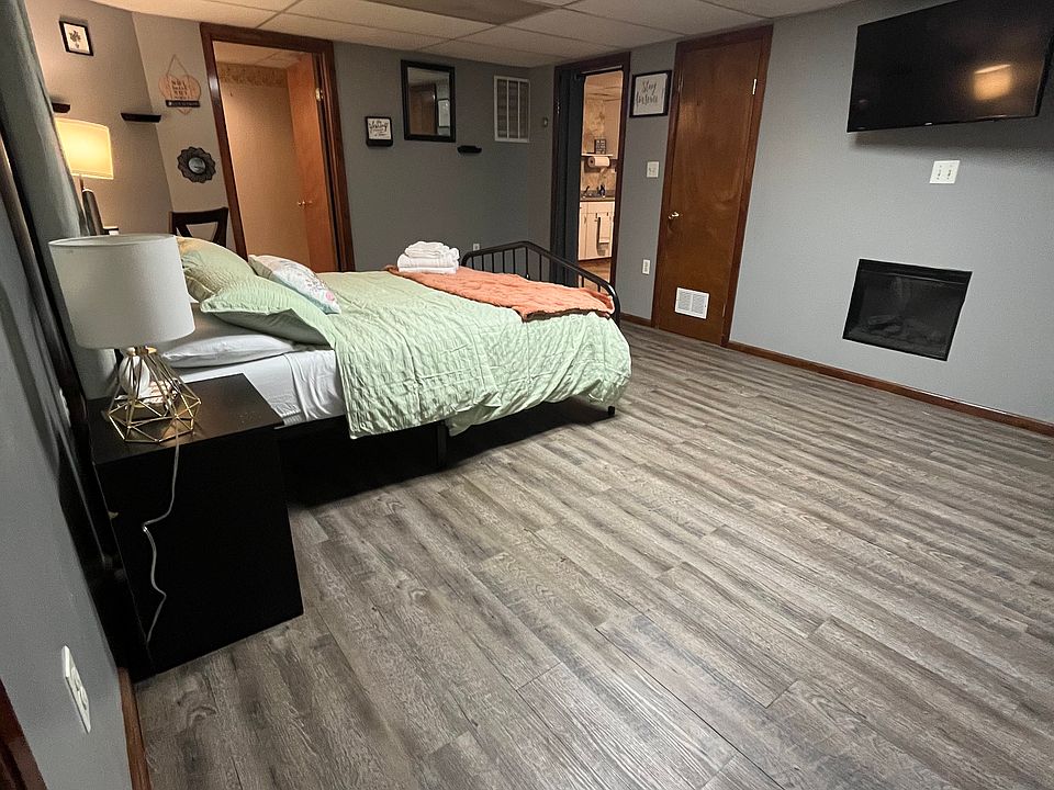 This finished/furnished basement offers a studio bedroom , a full kitchen, full bath, and a private walk-out entrance.