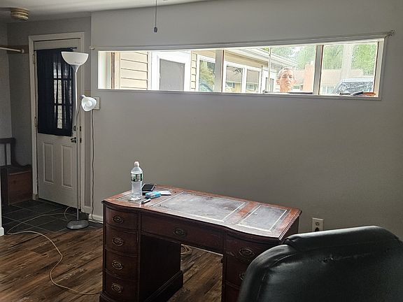 Ranch Style, one floor living. Living room is the rntire front of unit facing out to front of the house, Bedroom in the back of unit for privacy lage enough for a queen size bed and there is one closet, kitchenette fully applianced in the back of the unit