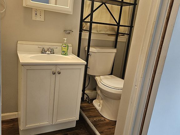 Bathrooom with stand up shower, two egress, vinyl flooring