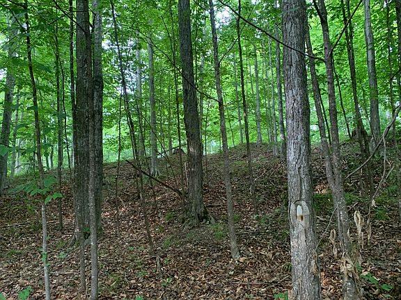 Beautiful hunting land with rolling ridges, pond, trails, 5 deer blinds 3 tree stands and rustic camp that offers bunks, table/chairs, some appliances, wood stove and a generator for electric. Food plots, small creek (spring), newly planted apple trees, firepit and vehicle awning.. Here is a great hunting package that you could have trophy deer for years to come!!