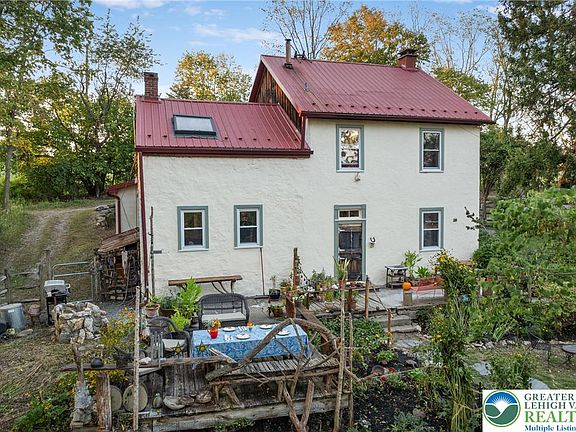 Discover the Fink Farm Estate, a 10+ acre creative compound in Lower Mount Bethel Township anchored by a late 18th-century stone farmhouse with four bedrooms and two baths. For more than fifty years, acclaimed photographer Larry Fink made this his home with his first wife, painter Joan Snyder, whose canvases helped redefine American abstraction, and later with his second wife, sculptor Martha Posner, whose work has been exhibited widely across the country. Together, these artists cultivated the property into a sanctuary where art, agriculture, and community intertwined. The farmhouse blends stone walls, exposed beams, and wide-plank floors with modern updates. Beyond it lies a Pennsylvania bank barn with studio/darkroom legacy, a rustic cabin with loft and greenhouse-style bath, a caretaker’s cottage with vaulted ceilings and wood stove, and a storybook studio cottage. A woodland sauna, chicken coop, stone sheds, and lean-tos add both charm and utility. The grounds feature fenced paddocks, raised beds, a greenhouse, koi pond, and quartz-studded meadows with trails leading to Little Martins Creek. Enrolled in Pennsylvania’s Clean & Green program, the estate enjoys low taxes while maintaining its agricultural character. Just 90 minutes from NYC and under two hours to Philadelphia, the Fink Farm Estate is both a historic home and a cultural landmark.
