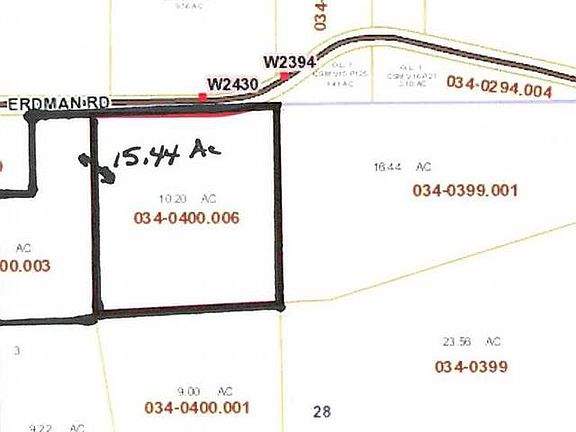 Check out this 15.4 acres on Erdman Road near White Lake. Opportunities abound from camping, recreation, to building your new dream home. This acreage could be purchased alone or with the adjacent 24.44 acres (MLS #160920) or an additional 9.2 acre parcel (MLS # 160924). Call today.