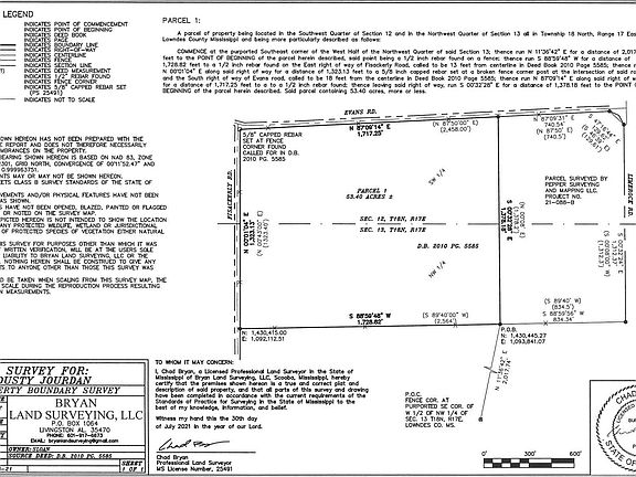 53 acres in West Lowndes off Evans Rd. This open-flat track of land is ready to be developed. Owner is willing to break the land into parcels of 25 and 10 acers.