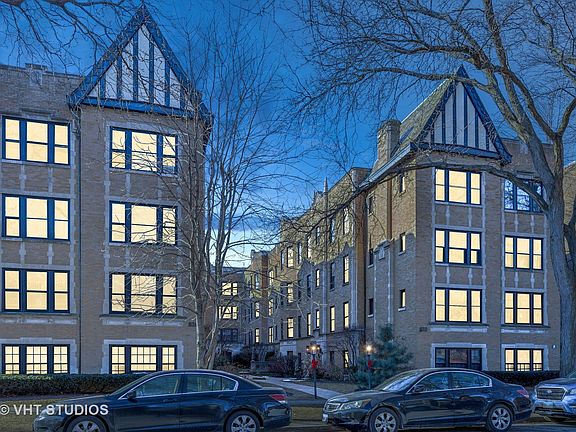 HURRY, DON'T MISS!! Treetop views and natural light abounds in this top floor, southeast corner unit in highly-desirable, walkable southeast Evanston location ! Boasting newly-refinished hardwood floors and a beautifully-remodeled kitchen with ample white cabinetry, new sleek quartz counters, new double-bowl sink, glass-tiled backsplash, new trendy faucet and hardware, and a Bosch dishwasher. Also features updated marble-tiled baths with lovely stained glass windows, custom brass vintage hardware and shower head, and Toto toilet. This unit is freshly painted with newer storm windows throughout, and also offers generous room sizes, in-unit laundry, and an ensuite third bedroom for use as a master bedroom, guest suite, or office. Display your artistic flair in the dramatic gallery foyer and hallway leading to a gracious formal dining room and inviting living room with a marble decorative fireplace and original stained glass windows. Assessments include heat, water, gas, and common area maintenance. Large, private storage unit, and heated garage space with 4-5 window air conditioning units included in the price (AC's sold AS IS). All of this comfort within a short walk or bike ride to the lake, beach, parks, schools, CTA/Metra, North Shore bike trail, Trader Joe's, nightlife, fabulous restaurants, brewery, entertainment, daily amenities, downtown Evanston and more!