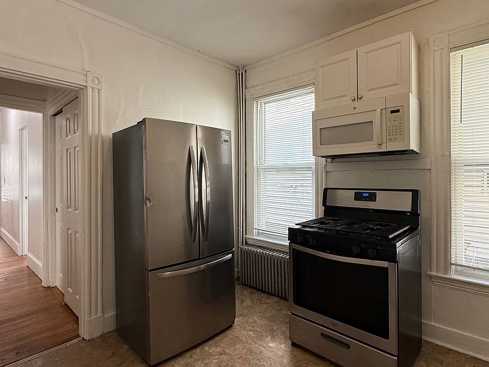 Step into a home that feels brand new! This spacious 3-bed, 1-bath apartment has just been freshly repainted, giving every room a bright, welcoming vibe. The eat-in kitchen is perfect for casual meals or entertaining friends and comes fully equipped with a refrigerator, stove, and microwave.