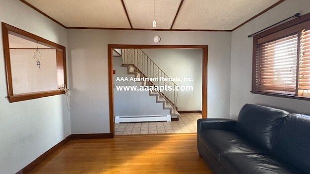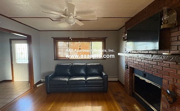 living room, dining room, eat-in kitchen, dishwasher, disposal, hardwood floor(s), tile floor(s), carpet(s), yard, porch, basement, washer/dryer, storage, electric (tenant pays), oil heat (tenant pays), oil hot water (tenant pays), 3 cars off street, no pets