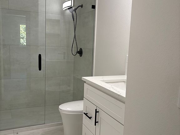 Freshly remodeled unit with new floors, kitchen, bathrooms, new paint. Large backyard with a shed and stream further back.