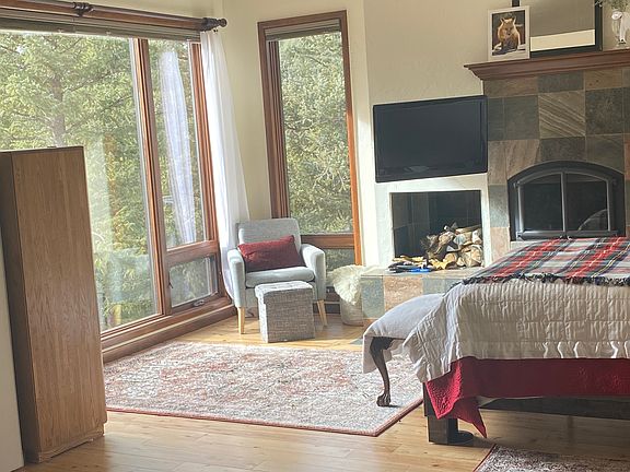 You will love living in the foothills of the Rocky Mountains. Centrally located to enjoy the city of Denver and all the recreational activities close by. Star filled sky at night WITHOUT city lights and sunny warm days with "in floor" heating and a natural fireplace for winter nights. Private one bedroom studio with separate entrance and deck in the forest with an awesome view of Mt. Blue Sky right from the queen bed. Bathroom with shower and jetted tub and heated floors. Bedroom has small wood fireplace and TV. Small kitchen has a full size refrigerator and range and oven. Evergreen is a historic small town centered around a mountain lake that provides skating in the winter and non-motorized boating in the summer. An annual Rodeo, concerts, plays and festivals entertain throughout the year. Restaurants, parks and major shopping outlets are minutes away. Downtown Denver is a half hour down the hill and mountain recreation and casinos are located a half hour uphill to the west. The Overlook is a quiet gated neighborhood ideally located to enjoy the city and the Rocky Mountains. The apartment is a separate part of the home in a quiet neighborhood.