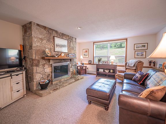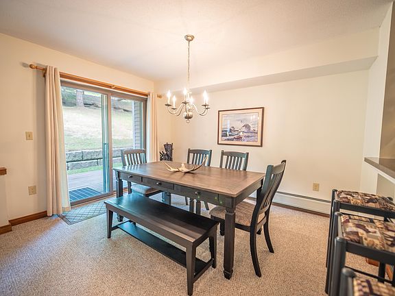 Immaculate trailside 2 bedroom Seasons condo at the Mount Snow ski resort. This is a rare ground floor unit adjacent to the ski trail. Never rented and immaculately maintained and updated. Enjoy an open concept living room with stone floor to ceiling wood burning fireplace, large dining area with walkout access to the yard and trail, perfect for pets or play, entry mudroom area, open kitchen with breakfast bar, updated appliances and counters, ample cabinet space, and pantry, a large guest room and full guest bath, as well as a spacious primary suite with walk in closet, and direct trail access. Each unit has a ski locker to stow your gear, and this unit is on the first floor, meaning easy access after a long day on the slopes. There is also a nice deck for enjoying the Vermont scenery, laundry in the unit, and recently installed hot water heating system. The ski trail is directly adjacent to this building for true ski-in/ski-out access and you also get use of the newly updated amenities building with indoor and outdoor pools, full gym, separate owner and tenant hot tub areas, locker rooms, basketball court, wood and trash, and on site management company allowing for downtime, not upkeep.