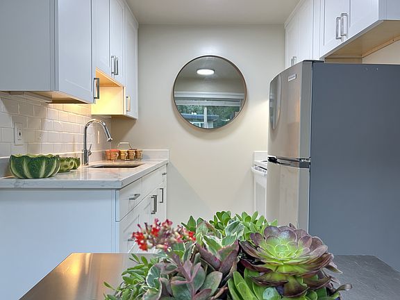 Other amenities: Beautiful outdoor deck with modern horizontal redwood fencing! 1-car assigned parking space and additional parking space for a nominal fee + 3 onsite laundry rooms, nice swimming pool, shared BBQ and organic gardens. Nice view of newly built modern front garden + olive trees too! We also recycle and collect our own rainwater. Water and trash are included in the rent.