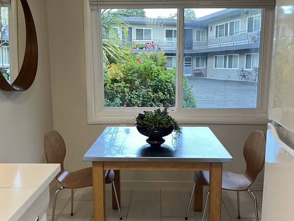 Mid Century Modern in Fairfax! 1/2 month free rent with a 1 year lease. Must begin lease by December 15, 2025 or sooner. Remodeled kitchen with white quartz counter top and white subway tile! New modern LED lighting,12x24" white ceramic tile on kitchen floor and matt white 2" hex tile on bath floor. Brand new GE stove and new Amana white refrigerator too! Brand new contemporary berber style carpet throughout. Dining area with views of courtyard and pool! Original white metal cabinets from the 50's in the kitchen . This 1 level, 1st floor unit has 1 bedroom/1 bath which has been remodeled new wood vanity ,custom countertop and Hans Grohe faucet and low flow Toto toilet. Enjoy your newly reglazed bath tub too!White 2" window blinds thru out. This apartment has a nice open floor plan with 2 large closets too!