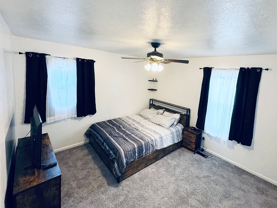 Current roommates are respectful male military members, all background-checked. Large backyard with a firepit offers plenty of outdoor space to relax.