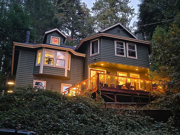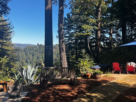 Nature is calling! Getaway to the fresh air and majestic redwoods of the Santa Cruz Mountains. Magnificent valley views all the way to the summit, this 2+ acre estate sits on a ridge off a private road (well maintained, two-lane). With its own fairy tree rings, walking trails and nature abounds all in a low maintenance atmosphere. There are many outdoor areas for dining with a view, conversation area with a view, and an arbor with 100 year old wysteria vines.
