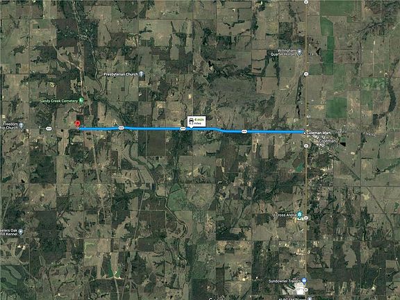 This 17.65 acre property is the perfect location for your next home outside of the city. Featuring a small creek, older trees, various clearings throughout, an older barn and driveway. Just 5 mins from Coleman, 7 mins from Milburn, right between Durant, Atoka and Ada. A short drive from Tishomingo Wildlife Refuge and the Red River/TX border. Water lines and electricity are at the road along two sides of paved road frontage. There used to be a home there 20+ years ago so a septic system may be on site as well - buyer to verify. Mobile homes allowed, no