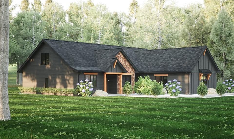 The home is finished with durable LP siding and striking black-on-black Marvin windows, cedar shakes, and a side entry. heated 3 stall garage.