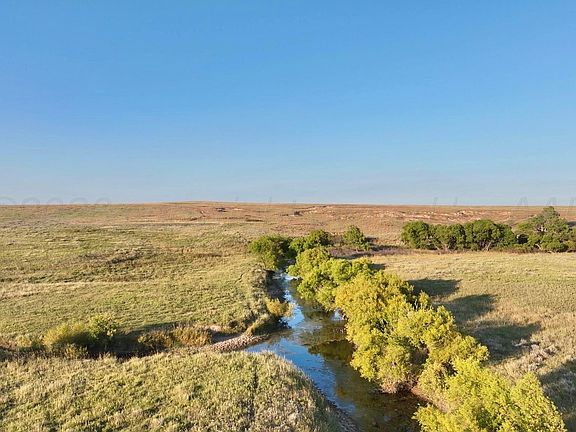 With rolling range land, miles of frontage on First Creek, numerous water wells, and miles of road frontage on multiple sides, the ranch delivers the rare combination of productivity and recreation.