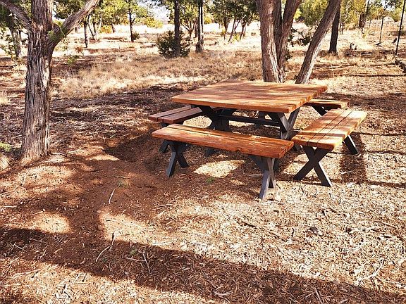 Fully stocked with optional furniture, kitchen basics, black out panels & privacy blinds. Bedroom has Queen bed.