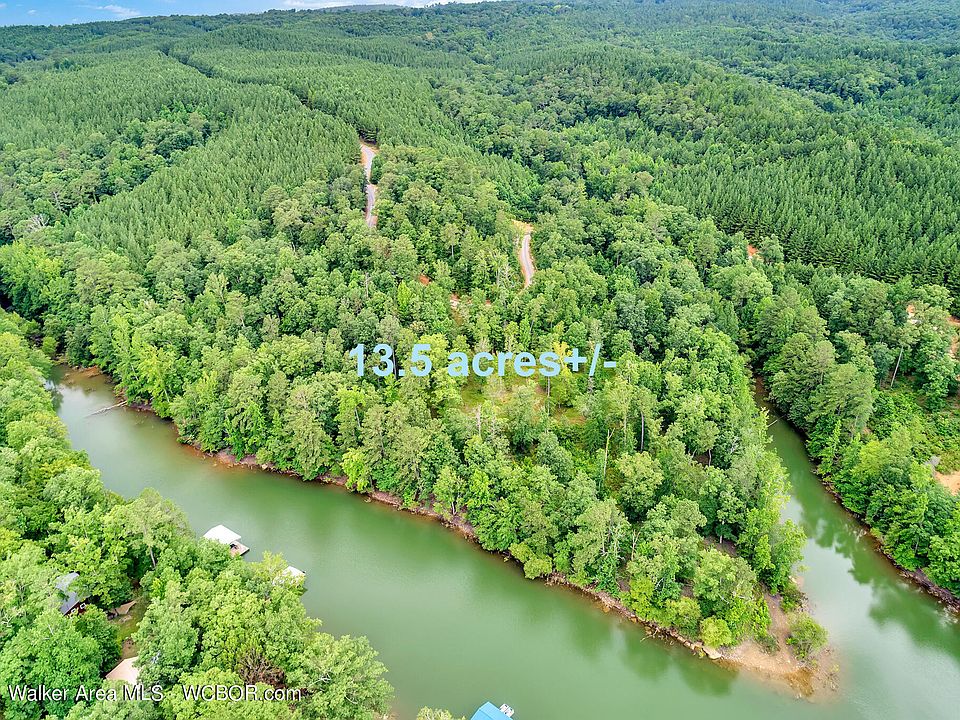 Unrestricted 13 acres+/- approx 1400ft of waterfront property survey will give exact acreage and waterfront footage, flat at the waters edge, rd to property(this rd will eventually be paved & part year round water & part seasonal per seller, an abundance of wildlife, tall timber and close to Arley.BUYER TO VERIFY ANY IMPORTANT INFORMATION SOLD AS