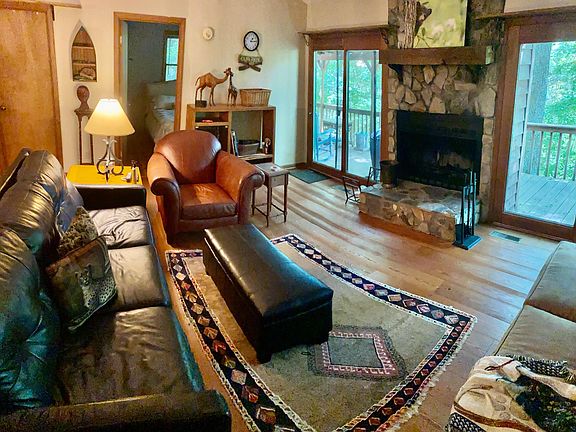 Charming Mountain cabin with a smattering of Kitch and rustic elegance, all on one floor! Easy access off new Hwy 221. Enjoy a huge deck overlooking a 1.7 wooded acres in private development between Boone and West Jefferson, convenient to the New River and Blue Ridge Parkway. 1hour to Beech ski resort. Great internet. Vaulted ceiling, most wood floors, wood burning, stone fireplace, 65" flatscreen smart Tv, ceiling fans. Well equipped kitchen with dishwasher, new microwave, new stainless fridge and range, quartz countertops, all cooking necessities. New HVAC , dehumidifier & h2o heater. Living room and bedrooms have French doors exit to partly covered deck overlooking the forest. Luxury leather sofa. Sip coffee in the oversized leather chair. Master bedroom has king bed, double dresser and night stand, walk in closet, en suite full bath with spacious vanity. Guest room has trundle bed, (two twins or kinig), dresser and night stand, desk & office chair, double closet. Inside Laundry area with washer/dryer/linen closet. ,Enjoy dining room or alfresco on deck picnic table with bbq grill, wicker furniture and 2 wood rockers. Another large covered deck at front. Watch deer, walk to or just hear the nearby trout fed Kevin's creek. Other amenities: huge fenced area. Natural landscaping. Two driveways in/ out. TERMS: Pet considered on individual basis with $200 pet fee. High speed Internet and utilities included, only to individuals with GOOD credit and stable income. Up 3,000 feet altitude so a four-wheel-drive is needed for winter season. Cleaning fee estimated $250. Managed by OWNER Who will reply after receiving answers to