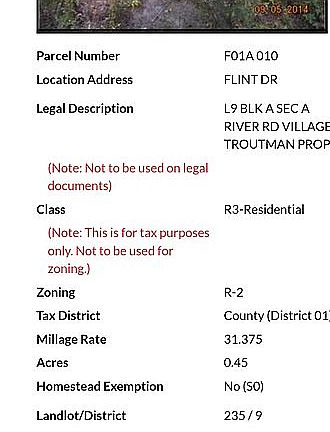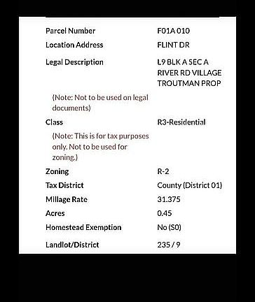 The seller is offering 10% of the final sell to the realtor that refers this property! Parcel Number---F01A 010 Location---Address--- 186 FLINT DR Class---R3-Residential Zoning---R-2 Tax District County (District 01) Millage Rate 31.375 Acres---0.45 Homestead Exemption---No (S0) Landlot/District---235 / 9 Love nature? Need some space? Well this is the property for you to build your dream home or investment property! It is located in a safe and quiet neighborhood. This property has some beautiful pine trees. It's located approximately 2 miles from Fort valley State University and 1 mile from South Peach Park. *No utilities/water