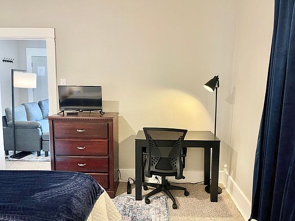 THIS IS A FULLY FURNISHED UNIT -- Discover the charm of this meticulously renovated 1940s Bungalow, a perfect haven for those seeking a delightful home away from home. Unwind in the two generously appointed bedrooms featuring blackout curtains, queen beds, dressers, and ample closet space for your convenience. The bathroom boasts a delightful shower/tub combination, providing a soothing retreat.