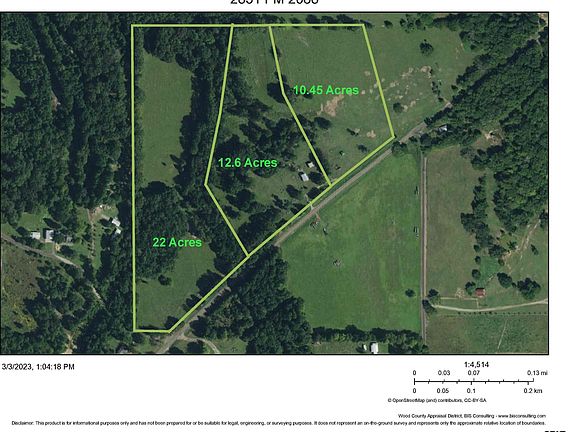 Gorgeous hay meadow! This beautiful parcel is ¾ fenced and has 315’ of road frontage with super exposure on an FM, if needed. Community water and electric service available at the road. Deed restrictions include no mobile homes or commercial business. An agricultural tax exemption is currently in place. This super convenient location is smack in the middle of everything East Texas has to offer and is only four miles to town (Wood County seat) for shopping, schools and hospital. Only 10 miles to famous, big mouth bass fishing Lake Fork AND two Wood County lakes, Quitman and Winnsboro, host to recreation, swimming, boating, fishing, beaches and marinas. And, only two hours to Dallas and Shreveport. An additional 12.61 acre parcel with home and shop adjoining at the west boundary also available.