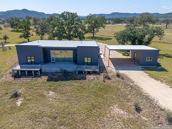 Perfect Hill Country Retreat - 22.5 Acres & Custom Home, Medina, TX Just 1.9 miles west of Medina along the scenic FM 337, this 22.5-acre Hill Country retreat offers the perfect balance of privacy, natural beauty, and modern comfort. The property is surrounded by professionally maintained hardwoods-Live Oak, Post Oak, Lacy Oak, and Spanish Oak-and showcases long-distance views that offers both natural beauty and tranquility, capturing the essence of the Texas Hill Country. At the heart of the retreat is a 2,650-square-foot custom home, completed in 2022. Built with a durable steel frame and expansive commercial-grade glass along the east side, the home was designed for both resilience and comfort. The split floor layout includes three spacious bedrooms and three full baths, offering superb privacy while also creating a natural flow for entertaining. The owner's suite enjoys private deck access and a spa-like bath featuring a freestanding tub, a custom walk-in shower, and a double vanity with hidden-reveal sinks. The owner's suite, living room and guest bedroom open to large decks and covered patio, seamlessly connecting indoor and outdoor living, while guest bedrooms provide comfort and seclusion for family and visitors. The property is supported by excellent infrastructure, including a 380-foot private well, water softener, 22k KV Generac automatic generator, and a 1,000-gallon propane tank. Two propane furnaces, an instant propane water heater, and propane cooking further ensure efficiency and reliability throughout the year. Additional amenities include covered parking, a 300-square-foot conditioned storage space suitable for a home office, gym, or workshop, as well as all-weather roads and an automatic entry gate for ease of access. The property also benefits from a current wildlife tax exemption, offering the opportunity for annual savings on property taxes. This exceptional retreat combines the timeless beauty of the Hill Country with the security of modern infrastructure and the comfort of a thoughtfully designed home. Whether envisioned as a full-time residence, a family getaway, or an investment, it represents a rare opportunity in one of the Texas Hill Country's most desirable regions.