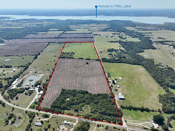 102.5± acres consisting of pasture and cultivated farm land with road frontage on both FM 744 and NW Co Rd 3310, over 5,000 of road frontage in total. Located only minutes North of Navarro Mills Lake, this land is an attractive opportunity to create your own family retreat, or farm and ranch with multiple potential home sites. Electricity is available at the road. There is currently no metered water service available, however it is planned to be available from Navarro Mills WSC in late 2027. A new boundary survey is scheduled for delivery by the end of December. Come see the potential this beautiful property has to offer.