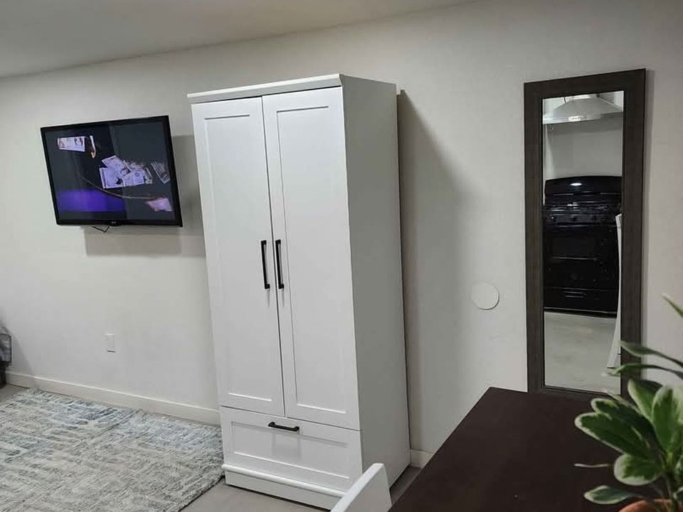 This fully furnished studio is perfect for a single adult and one child. The unit includes: