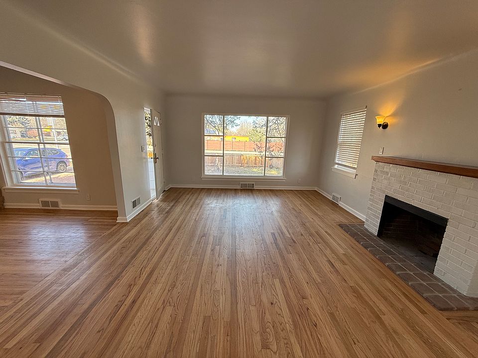 This is for the Upstairs unit. Step inside to a refreshed and inviting space with tons of modern updates! Fresh paint, new ceiling fans, and new fixtures throughout give this home a bright and polished look, ready for you to move right in. The spacious living area features beautiful hardwood flooring, large windows that flood the space with natural light, and a charming brick fireplace that serves as a striking centerpiece. This home offers a wealth of flexible living space, with two bedrooms on the main floor!