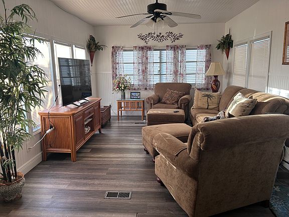 Beautiful 55+ community offers pool, workout facility, lawn care, trash removal and free internet. Minutes from the beach and conveniently located. 2 bedroom, 2 bath with covered seating on both sides of home. Looking for yearly rental and must pass background check ($45) and HOA approval ($100). Small dog may be considered but no cats allowed. Furnished and move in ready or unfurnished if you wish. Security deposit equal to one month rent upon approval. Available June 1