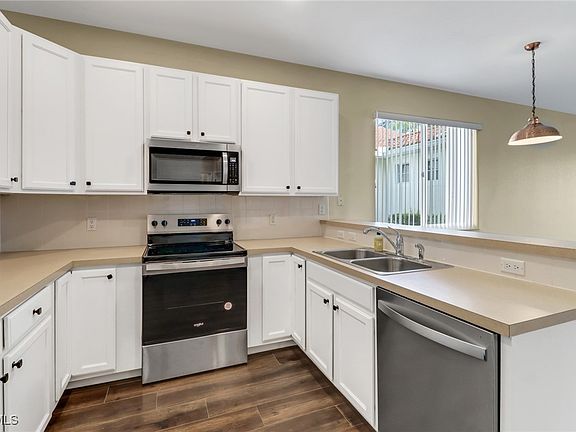 Newly renovated 3 bedroom, 2 bathroom home in beautiful Reflection Lakes, a tree-lined gated community. Situated on a beautifully landscaped lot, this home offers a spacious layout with high ceilings and a tranquil lake view from the screened in lanai. This bright and airy home has been freshly painted throughout, with new luxury vinyl flooring, custom lighting, and stainless-steel appliances that add a sleek and modern touch. Community amenities include a resort style pool, fitness center, play area for children, tennis and pickleball courts, billiards, a clubhouse, and a private path to Lakes Regional Park. Enjoy these many outdoor activities right at your doorstep. This prime location is in a peaceful neighborhood yet close to shopping, dining, entertainment, RSW, and some of Florida's best beaches. Includes landscaping, cable, wi-fi, washer, dryer and a 2-car garage. Come enjoy maintenance-free living in Southwest Florida. Pets are welcome. Smoke-free home. Don't miss your opportunity!
