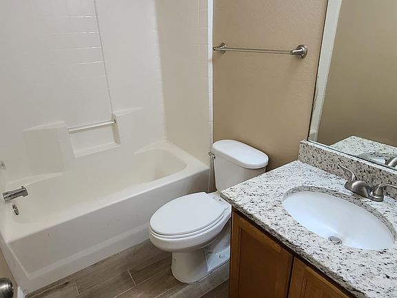 New wood look Porcelain tile thruout. New paint and trim, new granite counter tops in kitchen and bathroom under mount sinks with new faucets, new appliances. Fenced in backyard, sprinkler system. One car garage, new toilets. Come take a look you will love it