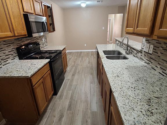 New faucetsNew toiletsNew granite counter topsOne car garageUnder mount sinksFenced in backyardSprinkler system