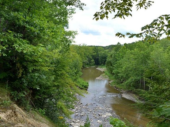 Spectacular views of the Grand River from 60'+ shale cliff in wine country! Private 58 acre parcel located at the located at the end of a quiet street .3 miles from Ferrante Winery. Woods, fields, cliffs and frontage on the Grand River.