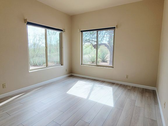 Beautiful single story 3 bedroom 2 bathroom home located on cul de sac in highly desirable community near the Fountain Park and Fountainside Restaurants/Shops! Enjoy gorgeous mountain views including picturesque sunsets at the Fountain while being only steps away from Overlook Trail or a Fountainside dinner! Vaulted ceilings and sunlights throughout the home provide bright, natural light and a wood burning fireplace in the living area will keep you cozy! The kitchen features an oversized picture window over the sink with mountain views, all kitchen appliances, and lots of storage space! The master bedroom features a large bathroom with double sinks, walk in shower, soaking tub, and a walk in closet. The lush backyard features established fruit trees and flowering bushes for privacy. The 2 car garage is attached and freshly painted. New windows and sliding doors were installed in 2023 and new flooring in 2025. Includes access to oversized heated community pool and spa! Pets negotiable.
