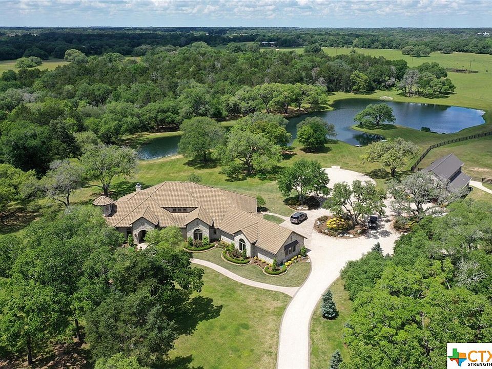 This stunning ranch, spanning over 70+/- acres of picturesque land, is considered the Hamptons for Houston Ranch Buyers. Conveniently accessible off Hwy 71 or Interstate 10, this property is located just an hour away from downtown Houston and 90 minutes from Austin. The ranch is adorned with magnificent live oaks and a 3-acre lake, making it a true oasis. The main residence is a custom-built single-story home, boasting 4,700 sqft of luxurious living space. With 3 bedrooms, 2-1/2 bathrooms, an office, a game room, media room, and even a gun room, this home has it all. The spacious 3-car, 1,300 sqft garage provides ample space for vehicles and storage. Two wells located on the property provide ample water throughout. The property also includes an incredibly well-designed horse barn, complete with a beautifully appointed 1 bedroom apartment above. There is also a riding arena and horse paddocks of 1-2 acres each, making it the perfect place for horse enthusiasts. The property has approximately 1,800 feet of road frontage, bordered by lovely split rail fencing and multiple custom, laser-cut driveway gates along Frantz Rd. The ranch as a whole currently has about 60 head of cattle, donkeys, and four horses. This property is truly a gem, offering a peaceful retreat from the hustle and bustle of city life. With its prime location, luxurious amenities, and stunning natural beauty, it is the perfect place to call home. Additional acreage options available, see agent for more details.