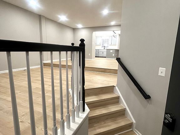 Brick front end unit with extra windows allowing plenty of natural light! New roof, new Hardwood floors throughout townhouse, newly renovated kitchen with 42" cabinets, SS appl. 4 bedrooms. Stylish new exhaust vent, breakfast bar, Family room/sitting room with new sliding leading to large deck. Specious Master suite with 2 closets and an updated Bath. Two additional bedrooms share the specious hall bath. Downstairs is an additional bedroom or office with a rec room. Room with a full size window and walk-out to the rear patio. Reverse osmosis system, water softer washer, dryer and utility sink are in the utility/storage room. The 1 car garage has access to a storage alcove on the side. Freshly painted and newly remodeled.