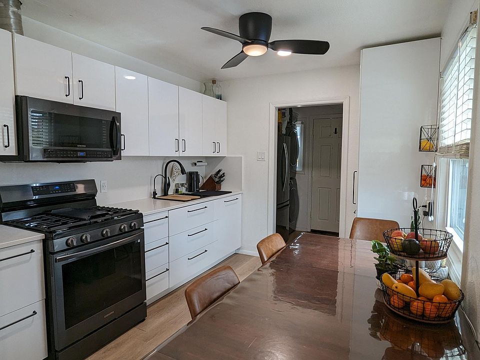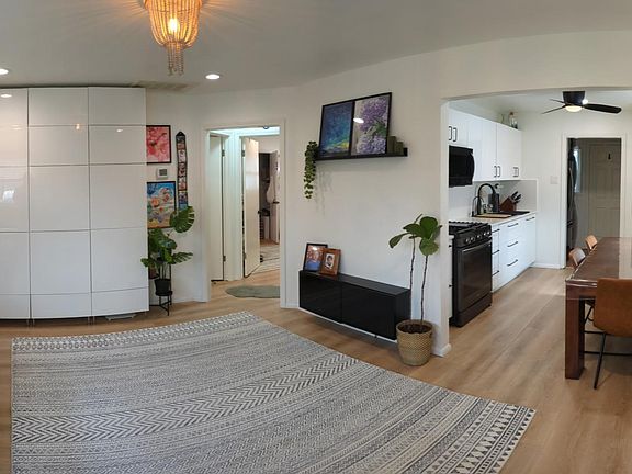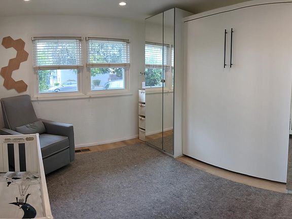 The house comes with built in cabinets and murphy bed for easy bedroom/office dual use. Newer appliances, washer/dryer combo, built in dishwasher, gas stove, refrigerator, central heating/AC and water heater.