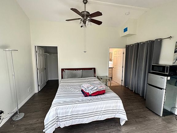 Attached bathBirds and lake areaMaster bedroom suiteAccess to the backyardHigh ceilingWalk-in closetSmall refrigerator