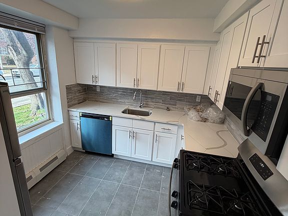 This fully renovated townhouse features a modern kitchen with new appliances and countertops.