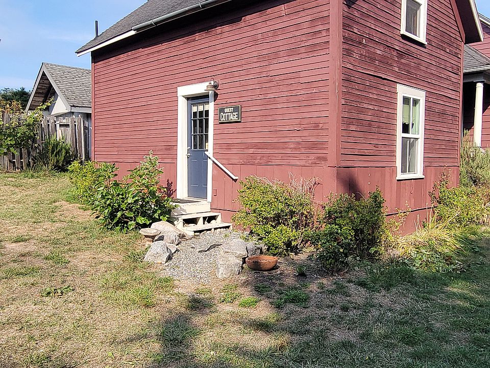 This rental is the guest house behind the main house on the same property. Located a small distance from the heart of town (3/4 mile?) we often choose to walk to the movie theatre, the grocery store, or restaurants. Rental comes either furnished or unfurnished. It is essentially two great rooms and a bathroom--downstairs is the kitchen, bath, dining, and living room; upstairs is one great bedroom with 3 beds that could easily serve as a bedroom and an office for remote workers. Very cute--one of the oldest homes on the island (the original homestead on the property). Rent includes all utilities (though you may want to purchase faster internet).