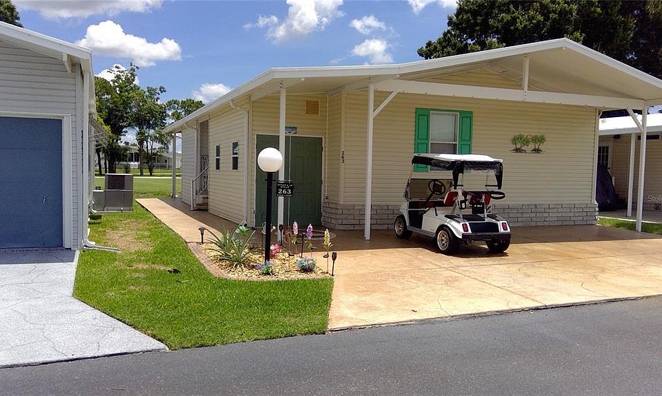 Adorable cottage like home located on the 4th hole of the golf course. Open concept house with a newer kitchen, new A/C, water softener, clam shell awnings, Leaf Filter gutter system and Roof Maxx was applied last year. Great screened lanai across the back of the house providing a beautiful view of the golf course. Charming house from the painted drive to the side entry with a small porch. The entry has a computer desk to utilize as a home office and laundry is located in a hall closet making this home efficient and a great size for a getaway place, has all the basics but not time consuming for upkeep! Everything you need including a golf cart! This home is located in central Florida, in Lily Lake Golf & RV Resort, 55+, resident owned gated community with all the typical amenities. The pride of ownership is apparent from the time you enter the community and throughout the park. The HOA fee includes your lawn mowed & trimmed, basic cable tv and garbage removal. All of the amenities are included except golf. This golf course is a nine-hole executive course, separate business owned by residents, and you may purchase shares to the course so that you would have voting rights, discounts & attend the golf course meeting. This is an active, friendly community so you won't be a stranger for long so come on down and join in on the fun! This is a must see, great community!