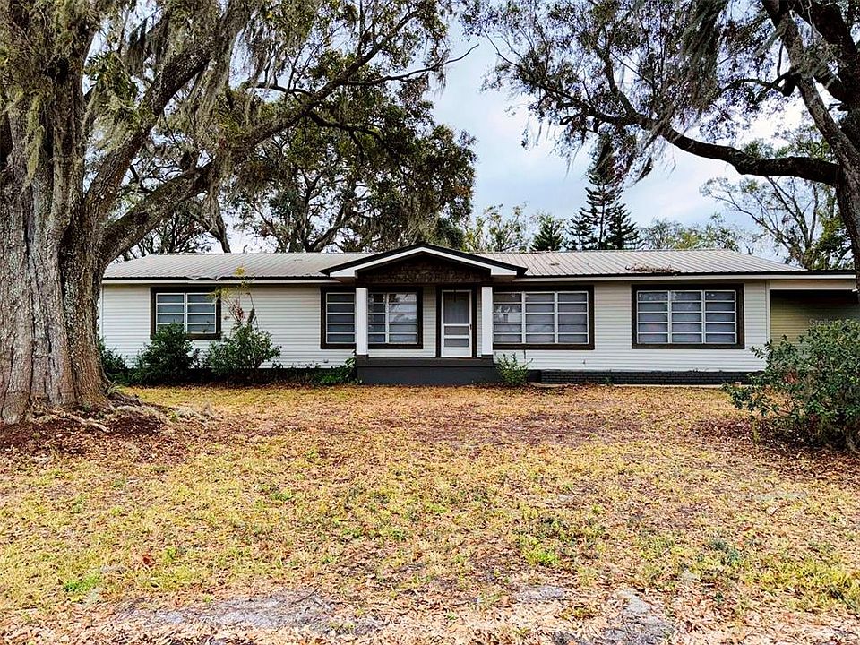 Mini Ranch: Easy Accessible 3 bedroom 2 bath Ranch Style home nestled under some tall majestic Oak Trees all on approximately 1.04 acres in southeast Polk County right on the border of Highlands County. It's like a minute from Hwy 27 that can easily transport you to the Super Store in about 10 minutes. When you walk up the front porch you step inside the home that has been extensively updated recently with tearing out the old carpeting back to the original hardwood floors. It' 's a large open concept of lots of living room, dining, and kitchen area. The clever coffered ceilings lend such pleasing architectural interest to the farm-style kitchen. The upper cabinets were changed out for farm style chunky open shelves, tile backsplash, and new lower cabinets. All appliances stay, Refrigerator, range, hood, and dishwasher. There is a rather large family room with access to an inside long laundry room, screen-enclosed rear porch, and dining area. The three bedrooms and two bathrooms are nestled together with lots of storage. The master bedroom has a sliding door with entry to a private open side porch leading to the park-like backyard. There is a separate storage building with its own carport, large well, and water system. There are 20 and 50-amp RV hookups. Just a short trip across the highway to Little Crooked Lake Boat Ramp, this home is ideal for those who enjoy outdoor activities.
