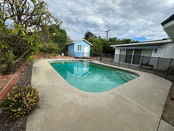 Fully renovated home in 2021 from top to bottom (including roof and sewage) with thoughts to make it our forever home. Then came our surprise last baby. Big open and bright space with a fireplace. Attached 2-car garage with in-unit laundry. Front yard is expansive and fenced. Backyard includes a large pool with jacuzzi, a fully renovated detached office space, citrus trees, beautiful flower gardens, and motorized awning. Situated on a large 10K+ lot. Front entrance is wheelchair friendly.